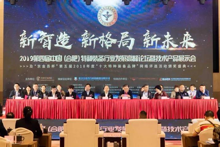 4月22日,以“新智造、新格局、新未来”为主题的2019第四届中国(合肥)特种装备行业发展高峰论坛暨技术产品展示会及“京金吾杯”第五届2018年度“十大特种装备品牌”颁奖盛典在合肥白金汉爵大酒店隆重举行。