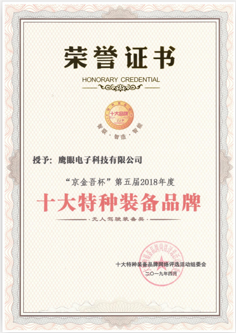 众望所归!鹰眼科技斩获2018年度“十大特种装备品牌”!